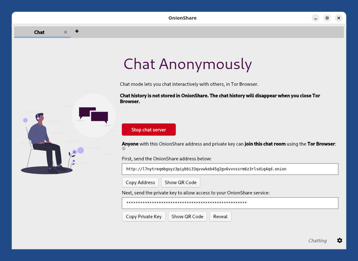 Con il servizio di chat di OnionShare: