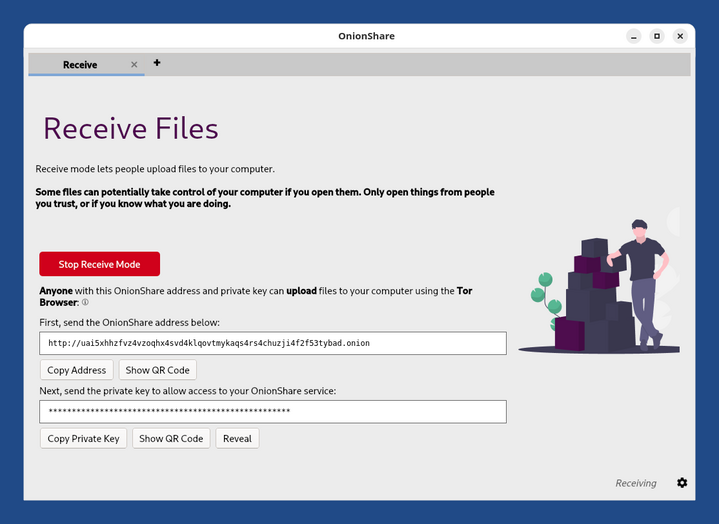 Con il servizio di Ricezione di OnionShare: